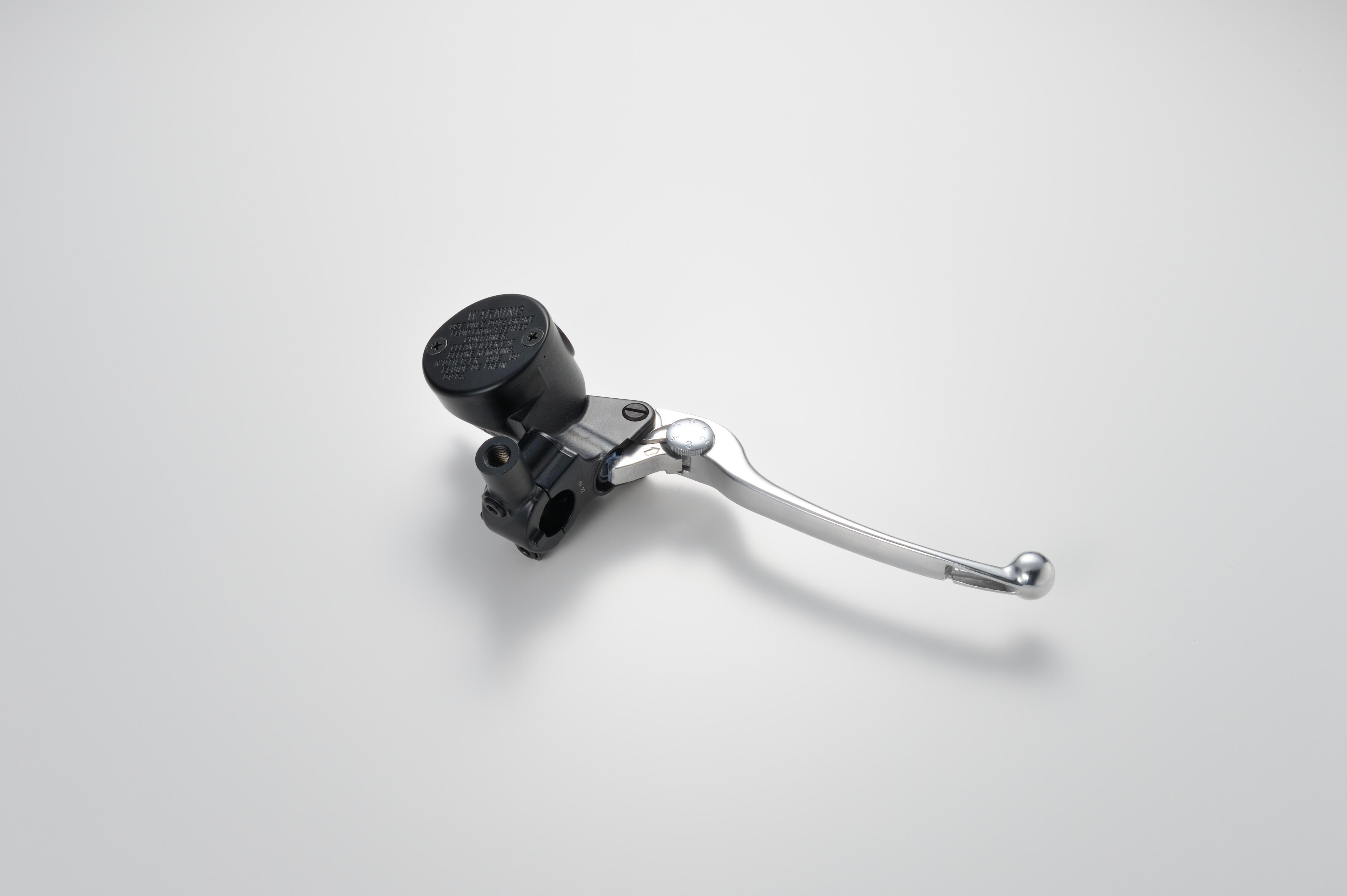 The master cylinder demonstrates a high degree of flexibility in installation, owing to its compact structure, and a long or a short lever can be set up. A wide range of body and lever color selections are available.